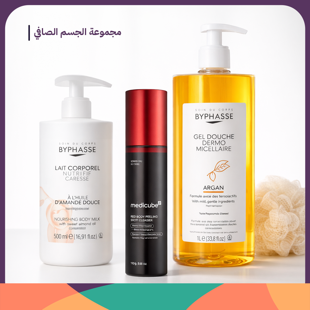 The Clear Body Collection is a complete skincare routine that includes Dermo Micellar Body Wash with Argan Oil for gentle cleansing without drying, MediCube Body Scrub to remove dead skin and refine pores, and Bayfas Body Milk with Sweet Almond Oil for deep hydration and long-lasting nourishment. The collection helps to smooth the skin, improve its texture, and give it a healthy, clear appearance.