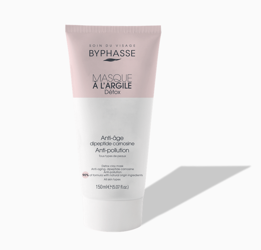 يعمل ماسك الطين Byphasse على تقليل تأثير التلوث اليومي والعوامل الخارجية الضارة على البشرة. تركيبته تحتوي على كارنوزين (Carnosine)، وهو ديببتيد موجود في أنسجة العضلات يساعد على حماية البشرة من الجذور الحرة ويعزز قدرة البشرة على إزالة السموم وتنقية نفسها.