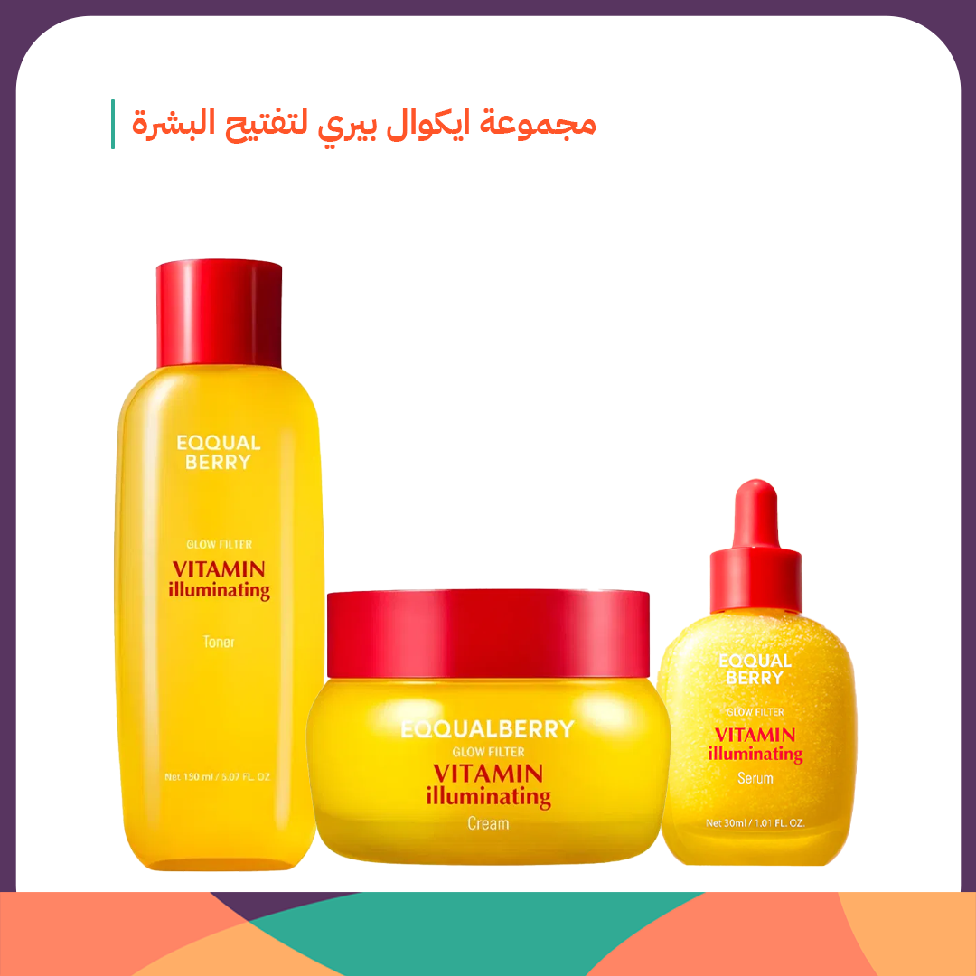 مجموعة إيكوال بيري لتفتيح البشرة من EQUALBERRY هي روتين متكامل غني بفيتامينات التفتيح والإشراق، صُمّم خصيصًا لمنح البشرة لونًا موحدًا، توهجًا طبيعيًا، وترطيبًا متوازنًا. تعمل المجموعة على معالجة البهتان والتصبغات مع الحفاظ على نعومة البشرة وصحتها، لتمنحك مظهرًا مشرقًا ونضرًا كل يوم.