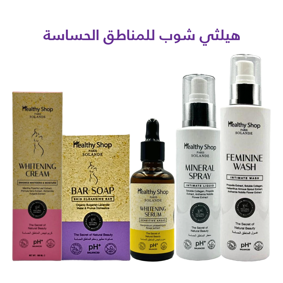 🌸 مجموعة هيلثي شوب للعناية بالمناطق الحساسة – تنظيف، تفتيح، وتعطير آمن وطبيعي