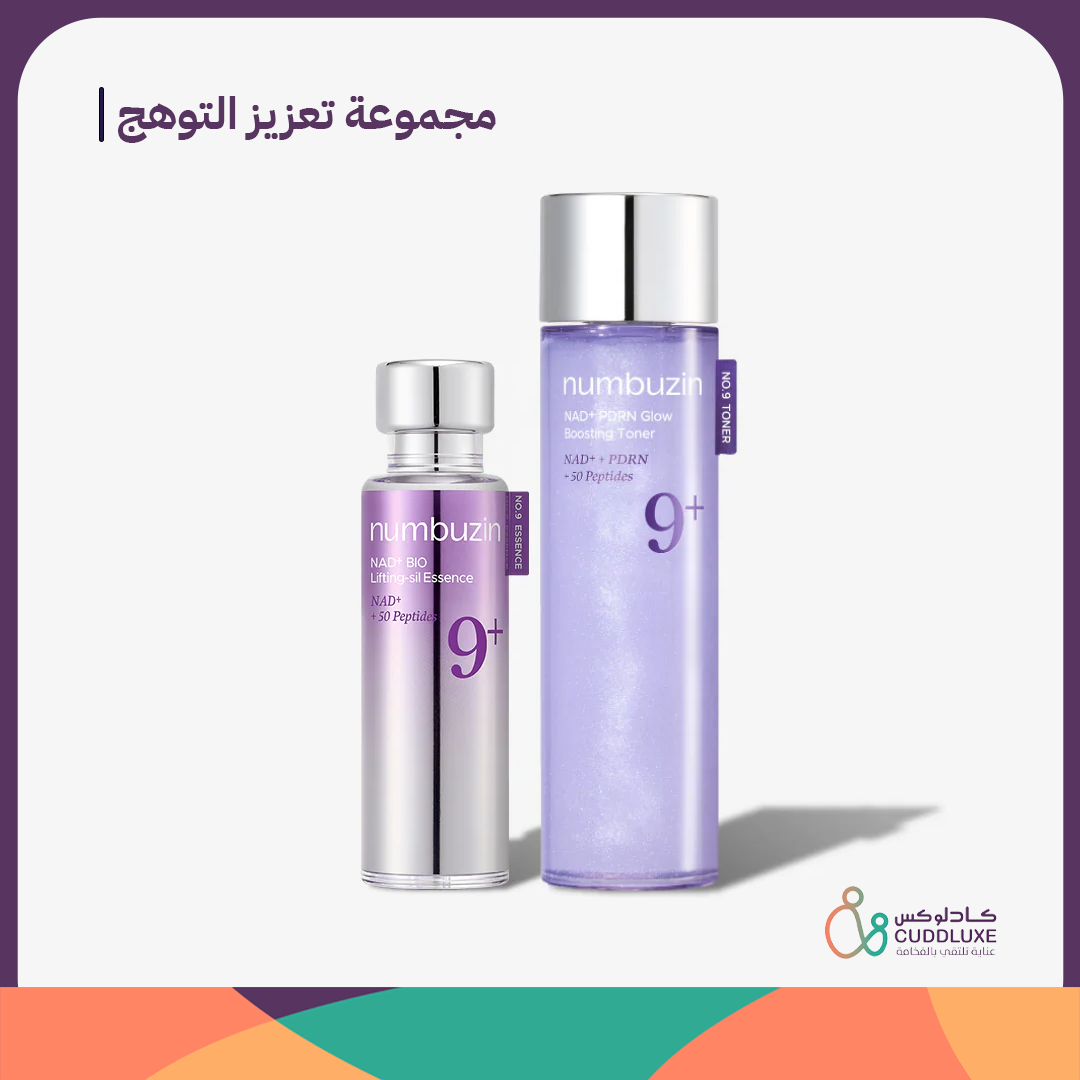 مجموعة Numbuzin No.9 لتعزيز التوهج والشد تجمع بين تونر وإيسنس غنيين بتقنية NAD+ وPDRN و+50 بيبتيد لدعم طاقة الخلايا، تحسين مرونة البشرة، ومنح إشراقة صحية تدوم. تركيبة متطورة تناسب جميع أنواع البشرة، خاصة الباهتة والمتعبة، وتعمل على تحضير البشرة ورفع كفاءة امتصاص العناية اليومية.