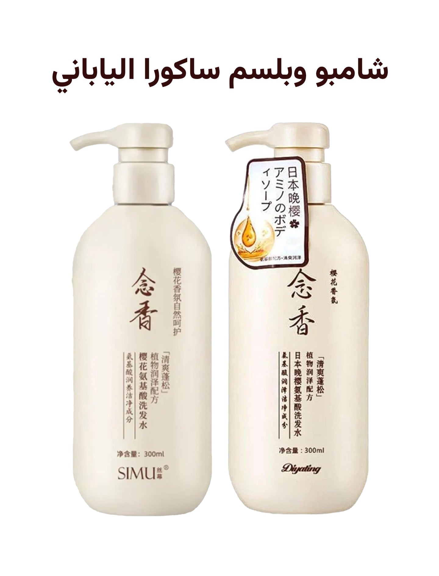 احصلي على شعر كثيف وصحي مع شامبو وبلسم ساكورا الياباني الغني بخلاصة زهرة الكرز والكولاجين الطبيعي، المصمم خصيصًا لتعزيز نمو الشعر، منع التساقط، ومحاربة القشرة.