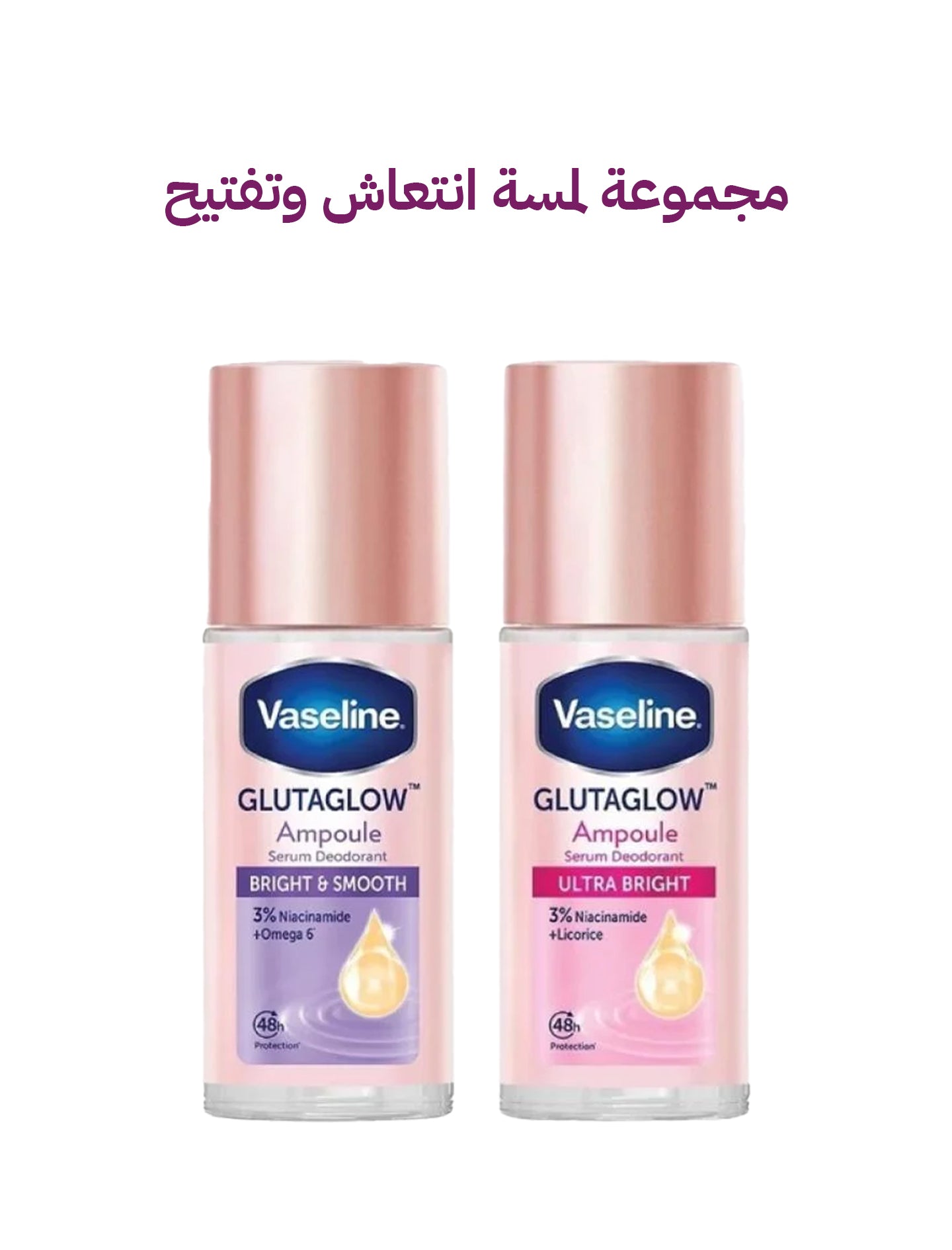 دلّلي بشرتك مع مجموعة مزيلات العرق فازلين GlutaGlow التايلندية، المصممة خصيصًا لمنحك عناية متكاملة تحت الإبط تجمع بين التفتيح، الترطيب، والحماية من التعرق. تركيبة فعالة تحتوي على الجلوتاثيون، فيتامين C، ومغذيات طبيعية لتوحيد لون البشرة، تقليل التصبغات، ومنحك إحساسًا منعشًا يدوم طوال اليوم.